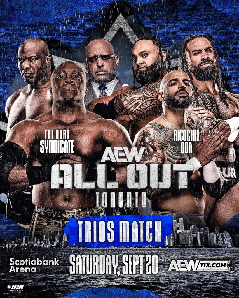 The trios match features The Hurt Syndicate. Bobby Lashley, Shelton Benjamin, and MVP are in this faction. They compete against the team of Ricochet and GOA. GOA consists of Bishop Kaun and Toa Liona. It is a grudge match born from rejection and revenge. The story began months ago when MVP rescinded an offer for Ricochet to join his faction. In response, Ricochet aligned himself with GOA. The trio deliberately cost Lashley and Benjamin their AEW World Tag Team Championship at Forbidden Door. This led to this inevitable collision.