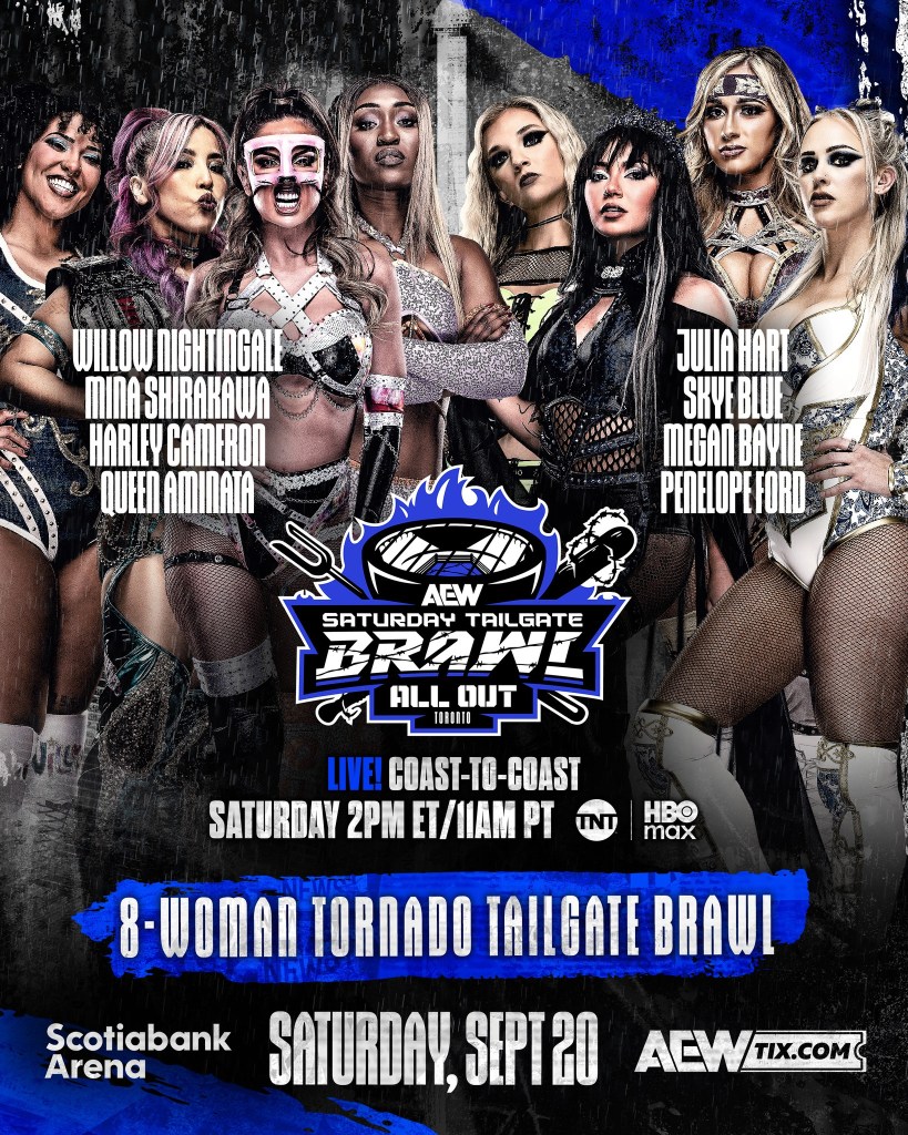 Harley Cameron, Mina Shirakawa, Queen Aminata, and Willow Nightingale vs. Megan Bayne, Penelope Ford, and Triangle of Madness (Julia Hart & Skye Blue)Eight-woman Tornado Tailgate Brawl