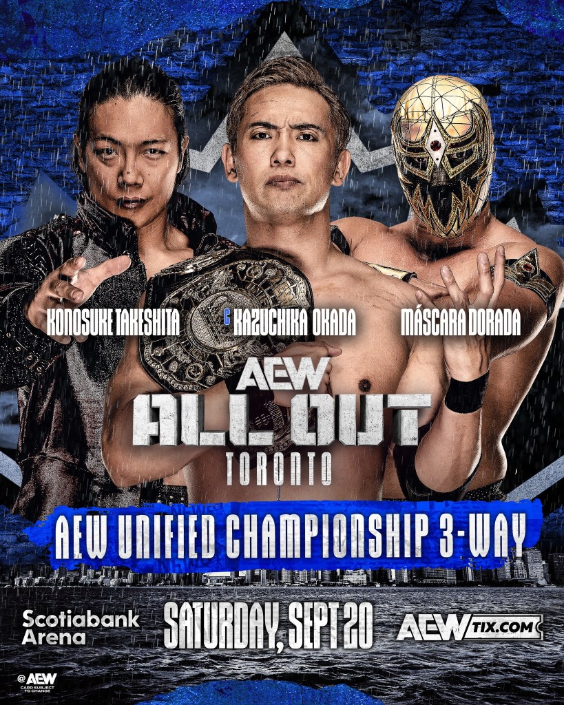 Kazuchika Okada (c) vs. Konosuke Takeshita vs. Máscara DoradaThree-way match for the AEW Unified Championship